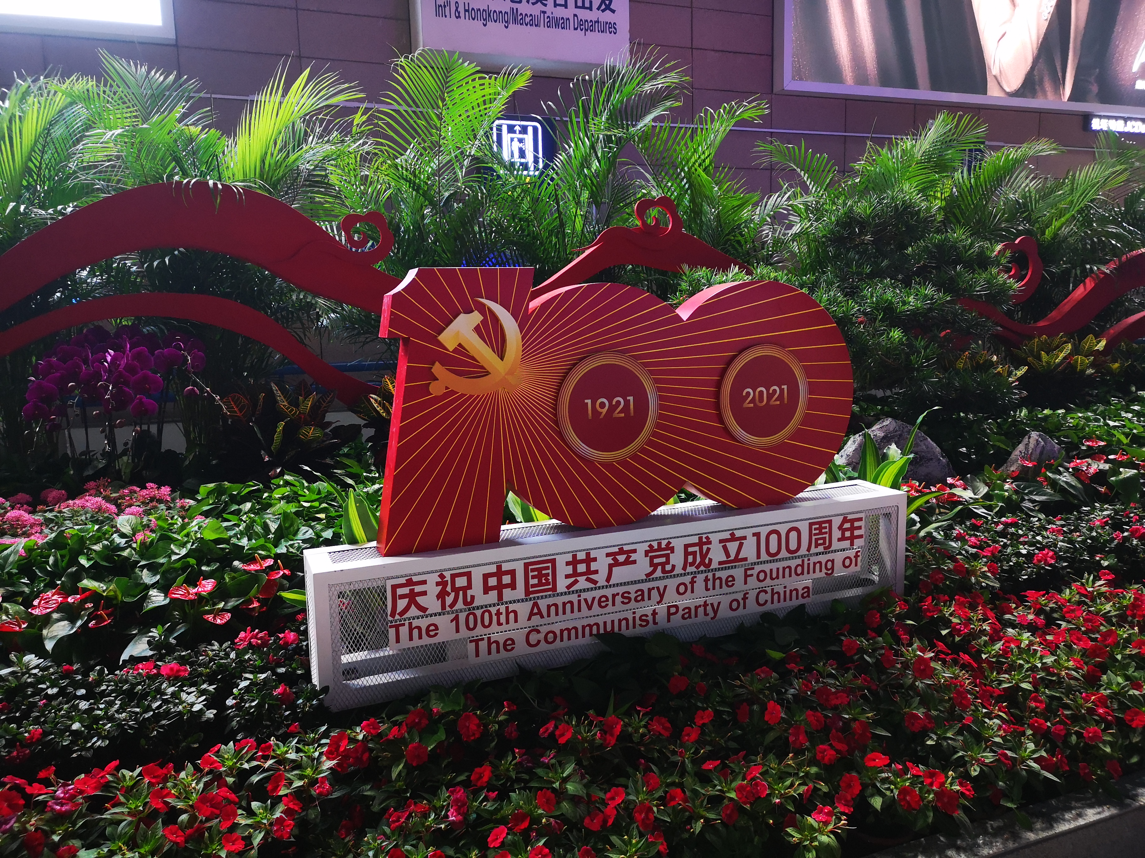 浦东机场为庆祝中国共产党成立100周年,在机场外打造一处地标性构筑物,把学习教育作为激发党员领导干部的历史担当、情怀、责任、信念,不忘初心、牢记使命的有效途径。
